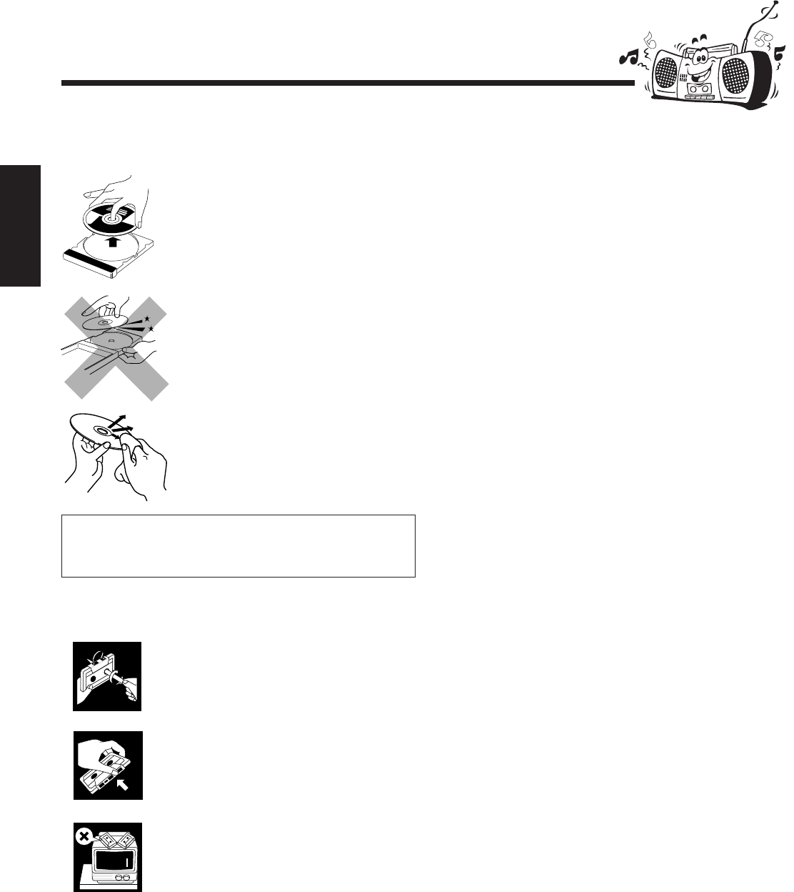 Pidä levyt, kasetit ja mekanismit puhtaina saadaksesi parhaan suorituskyvyn laitteestasi.