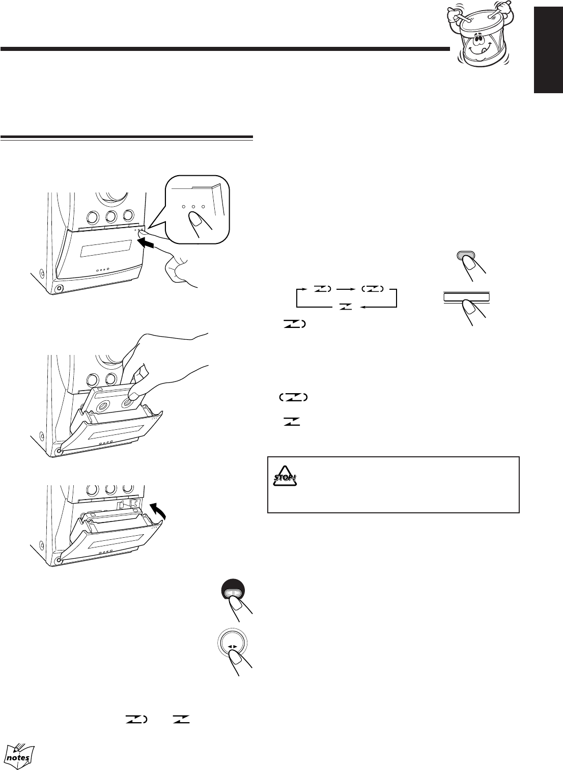 Om du vill ta ut kassetten trycker du på 0 PUSH OPEN på