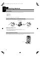 01 UX-V55R(E)-eng.fm Page 5 Friday, June 11, 1999 11:33 AM English Connecting the AC Power Cord Firmly insert the supplied AC power cord into the AC inlet on the back of the Unit. AC IN Power cord CAUTIONS: • • ONLY USE THE JVC POWER CORD PROVIDED WITH THIS SYSTEM TO AVOID MALFUNCTION OR DAMAGE TO THE SYSTEM. BE SURE TO UNPLUG THE POWER CORD FROM THE OUTLET WHEN GOING OUT OR WHEN THE SYSTEM IS NOT IN USE FOR AN EXTENDED PERIOD OF TIME.