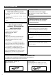 Explanations Troubleshooting (continued) Problems Related to Error Code and Onscreen Display (continued) Onscreen Display Cause and Recovery Refer to Page “HARD-DISK CAPACITY IS VERY • LITTLE” → When hard disk space is about to run out, make changes accordingly Recordable space on the hard disk is running out. P51 such as formatting the hard disk or changing the setting to the Repeat P32 Record mode. * All event record data will be deleted when formatting is executed.