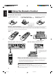 English Using the Remote Control Installing the dry batteries ——————————————————————————— 2 Install the dry batteries (Size “AAA”, R03 or UM4 x 2). 1 Slide open the cover. 3 Slide the cover back into position. • Align the polarities with the markings inside the battery compartment of the remote control, and install.