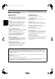 ! " # $ % & '( Warnings, Cautions and Others Mises en garde, précautions et indications diverses CAUTION RISK OF ELECTRIC SHOCK DO NOT OPEN CAUTION: TO REDUCE THE RISK OF ELECTRIC SHOCK. DO NOT REMOVE COVER (OR BACK) NO USER SERVICEABLE PARTS INSIDE. REFER SERVICING TO QUALIFIED SERVICE PERSONNEL.