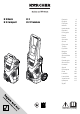K 2 Premium EU-Konformitätserklärung K2 K 2 Compact K 2 Basic Technische Daten Elektrischer Anschluss Spannung 220-240 1~50-60 V Hz 6 A Stromaufnahme Schutzgrad IP X5 Schutzklasse II Netzabsicherung (träge) 10 A Wasseranschluss Zulaufdruck (max.) 1,2 MPa Zulauftemperatur (max.) 40 °C Zulaufmenge (min.) 8 l/min Arbeitsdruck 7,4 MPa Max.