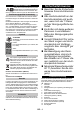 Nurodymai dėl saugos Bendrieji nurodymai Prieš pirmą kartą pradedant naudotis prietaisu, būtina atidžiai perskaityti originalią instrukciją, ja vadovautis ir saugoti, kad ja galima būtų naudotis vėliau arba perduoti naujam savininkui. Naudojimas pagal paskirtį „T-Racer“ galima naudoti su „Kärcher“ K2–K7 klasių „Home & Garden“ aukšto slėgio valymo įrenginiais. Su iki 1991 metų pagamintais prietaisais papildomai naudokite adapterį (užs. Nr.: 2.642-893.0). „T-Racer“ idealiai tinka įvairaus paviršiaus, pvz.