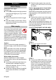 Finish operation Storage Caution Only separate the high-pressure hose from the trigger gun or the appliance while there is no pressure in the system. Î After working with detergent, suspend detergent suction hose in a container filled with clear water, switch the appliance on for around 1 minute once the spray lance has been removed and rinse until water runs clear. Î Release the lever on the trigger gun. Î Turn off the appliance "0/OFF". Î Turn off tap. Î Detach the appliance from the water supply.