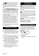 Läs originaldriftsanvisningen innan aggregatet används första gången, följ anvisningarna och spara driftsanvisningen för framtida behov, eller för nästa ägare. Ändamålsenlig användning PS 40 Powerschrubber kan användas med alla KÄRCHER högtryckstvättar from årsmodell 1992, upp till ett tryck på 16 MPa (160 bar / 2300 psi). PS 40 är perfekt till högtrycksrengöring och skrubbning av trappor och huvudsakligen släta underlag utomhus (t.ex.
