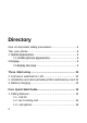 User's manual Directory One. An Important safety precautions ................................. 6 Two. your phone .................................................................. 8 1. Mobile Appearance .......................................................... 9 1.1 mobile phones appearance .................................... 9 2.Display.............................................................................. 9 2.1display site map....................................................... 9 Three.