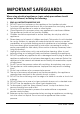 IMPORTANT SAFEGUARDS When using electrical appliances, basic safety precautions should always be followed, including the following: 1. 2. 3. 4. 5. 6. 7. 8. 9. 10. 11. 12. 13. 14. 15. 16. 17. 18. READ ALL INSTRUCTIONS BEFORE USE. DO NOT touch hot surfaces on the appliance. Use handles or knobs. To protect against electrical shock, do not immerse the cord, plug, external housing or the appliance in water or other liquids. Close supervision is necessary when any appliance is used near children.