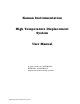 User Manual HIGH TEMPERATURE DISPLACEMENT SYSTEM ******** DO NOT MAKE ANY MODIFICATIONS TO CABLE LENGTH, SENSOR OR CALIBRATED TARGET MATERIALS WITHOUT PRIOR CONSULTATION WITH A KAMAN APPLICATION ENGINEER ******** Copyright © 2000 PART NO: 860064 Rev.