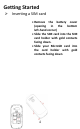 Getting Started Inserting a SIM card Remove the battery cover (opening in the bottom left-hand corner) Slide the SIM card into the SIM card holder with gold contacts facing down.