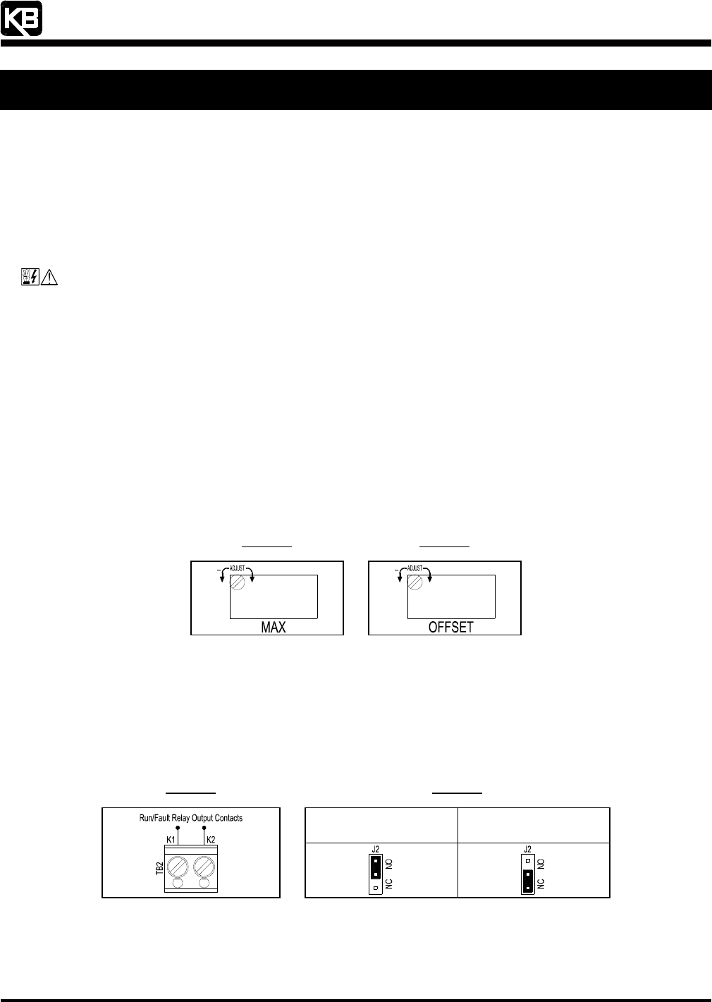 Note: The MAX Trimpot on the KBVF has been factory set to an Upper Frequency Limit of 60 Hz (50 Hz, for 50 Hz motors). If the