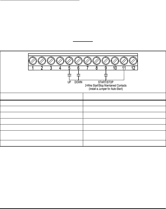 Note: Use a maintained contact for Start/Stop. If a Start/Stop Contact is not used, a jumper