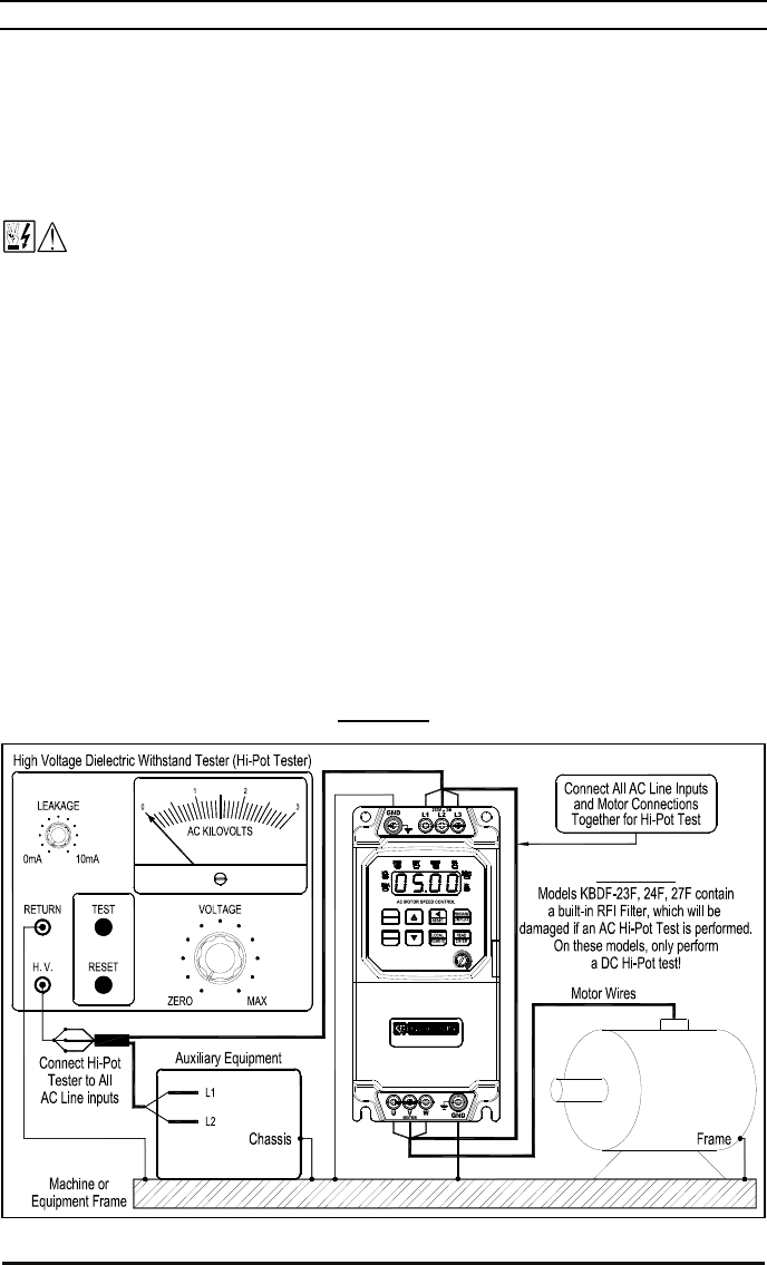 filters. On Models KBDF-23F, 24F, 27F only perform a DC Hi-Pot Test.