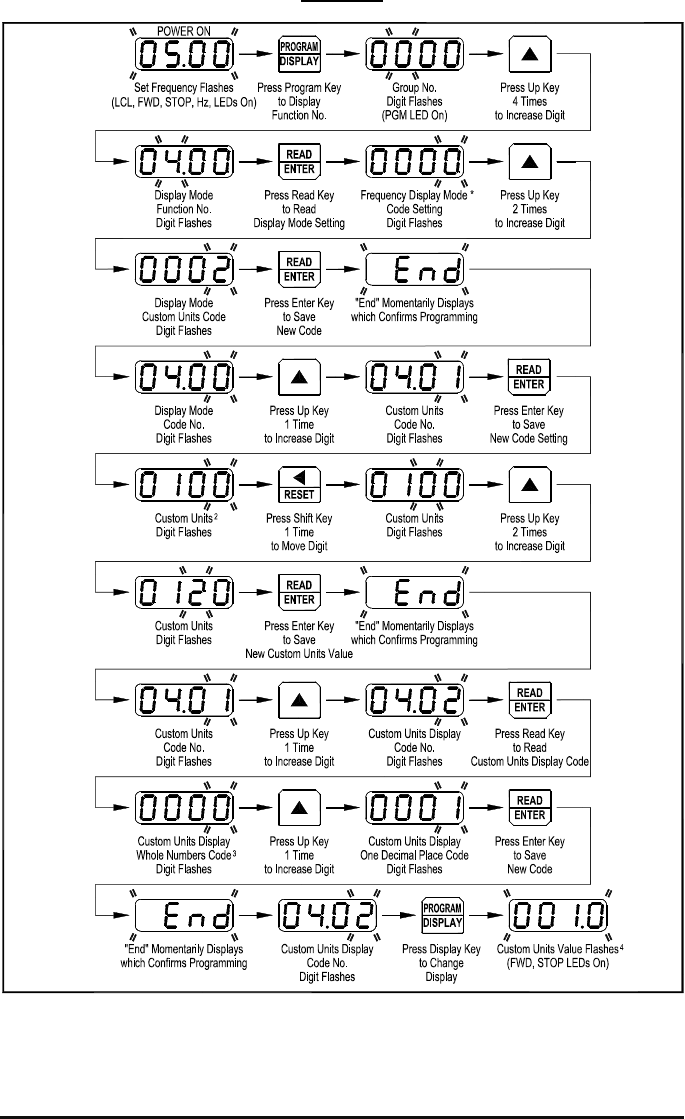 FLOW CHART TO PROGRAM THE DRIVE TO DISPLAY CUSTOM UNITS "012.0"