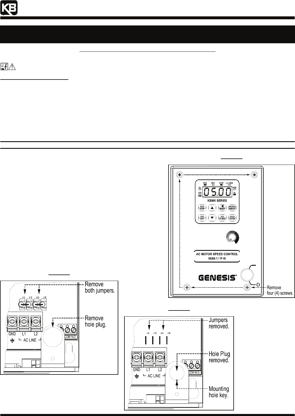 SAFETY WARNING! Read the Safety Warning, on page 5, in the KBMK Installation and Operation Manual, before proceeding.