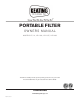 ® PORTABLE FILTER OW N E R S M A N UA L M O D E LS P C 1 4 , LB - 1 0 0 , LB - 1 6 5 , LB - 2 0 0 This Owner’s Guide provides specific operating instructions for your model. Use the Portable Filter only as instructed in this Service Guide. 1-800-KEATING www.keatingofchicago.