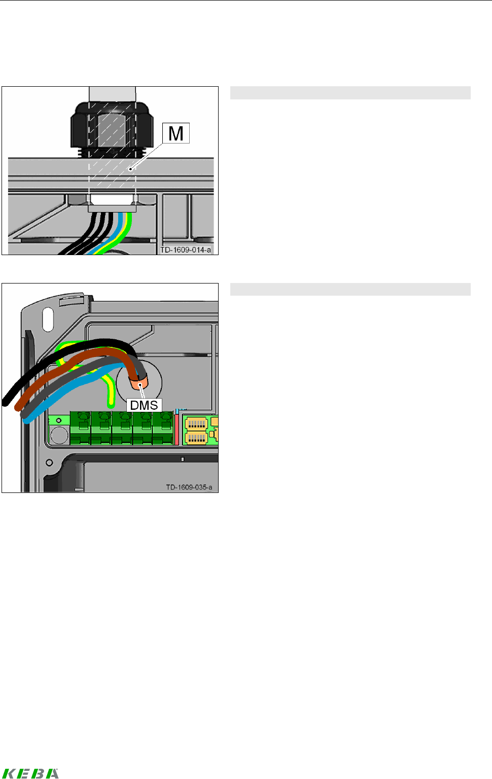 Introduire suffisamment l'alimentation dans le passe-câble (alimentation par le haut) ou l'em-