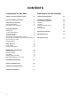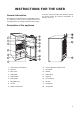 CONTENT S Instructions for the User Instructions for the Installer Guide to use the instruction book 2 Technical Specifications 12 Important Safety Instructions 3 Instructions for the User General Information Description of the Appliance 5 5 5 Using the Appliance 6 Installing the Appliance Transportation, Unpacking Cleaning Location Ventilation Requirements Levelling Door Reversal 12 12 12 12 13 13 13 Before Use To Start the Appliance Thermostat Control Hints for storage Storage time and tempe