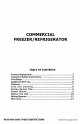 COMMERCIAL FREEZER/REFRIGERATOR TABLE OF CONTENTS Product Registration .............................................................. Important Safety Instructions ................................................ First Steps .................................................................................. Appliance Start=up ................................................................. Features ................................................................................ Care and Cleaning ..........