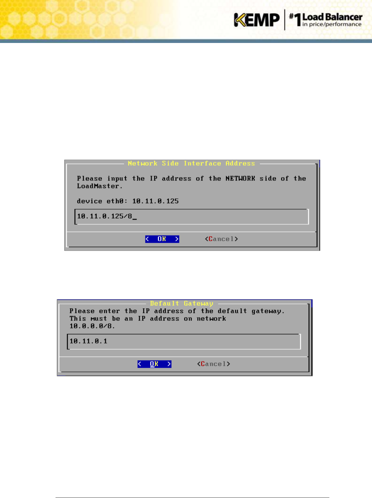 2. Enter the IP address of the eth0 interface, the network-facing interface of the LoadMaster,