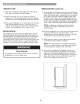 TABLE OF CONTENTS WORTHY ovens sss 3 Protection Agreements wm 4 Important Safety Instructions coven 5-7 Electrical & Grounding Parts and Features... Refrigerator Installation Unpacking Your Refrigerator. Installation wen Removing, Replacing Your Refrigerator and Freezer Handles, Doors and Drawers... 11-15 Leveling and Door Alignment 16 Using Your Refrigerator...