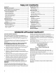 TABLE OF CONTENTS WARRANTY ..................................................................................... 2 REFRIGERATOR SAFETY .............................................................. 3 Proper Disposal of Your Old Refrigerator .................................... 3 INSTALLATION INSTRUCTIONS .................................................. Unpack the Refrigerator ............................................................... Location Requirements ...........................................