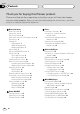 Section 00 Table des matières Nous vous remercions d’avoir acquis cet appareil Pioneer. Veuillez lire attentivement ce mode d’emploi de manière à vous familiariser avec le fonctionnement de l’appareil. Cela fait, conservez ce mode d’emploi afin de pouvoir vous y référer en cas de besoin.