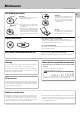Maintenance DPF-3010/2010/1010 (En) Disc handling precautions 9 Cleaning Handling If fingerprints or foreign matter become attached to the disc, lightly wipe the disc with a soft cotton cloth (or similar) from the center of the disc outwards, in a radial manner. Hold compact discs so that you do not touch the playing surface. Label side Sticker Playing side Sticky paste ÷ Do not attach paper or tape to either the playing side or the label side of compact discs.