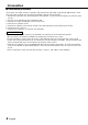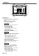 Safety precautions 2WARNING To prevent injury or fire, take the following precautions: • When extending the ignition, battery, or ground wires, make sure to use automotivegrade wires or other wires with a 8mm2 (AWG8) or more to prevent wire deterioration and damage to the wire coating. • To prevent a short circuit, never put or leave any metallic objects (such as coins or metal tools) inside the unit.