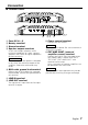 Connection ■ Terminal names POWER IN FUSE(25Ax3) BATT. GND SPEAKER OUTPUT P.CON 25 25 25 ! B.M.S. OFF REMOTE +12dB @ # $ BAND REJECT –6dB OFF –12dB REVERSE LINE IN INFRASONIC PHASE NORMAL % OFF ON LINE OUT EXT.AMP.CONT. 15Hz 25Hz L L R R GND ^ ! Fuse (25 A × 3) @ Battery terminal # Ground terminal % Speaker output terminals As this unit accepts speakers with a minimum impedance of 1 ohm, connect speakers with 1-ohm or higher impedance to these terminals.
