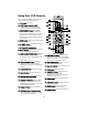 Using Your LCD Remote Note: Pressing the F.SHIFT button (#25) activates a button’s secondary function 1. LCD display: see page 9 2/3. LCD function buttons 1 and 2: Selects the function shown directly above the button on the LCD display 4. CONFIRM/SHIFT button: CONFIRM:reestablishes interrupted communication with the receiver; SHIFT: lets you use the Input Selector buttons (see #17) to select a component and control it without making it the active input 5.
