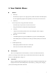 3. Your Mobile Phone Buttons 1 Menu key Touch the key to open or close a pop-up menu, and the menu shows available options of current application program or the operations you can execute on current screen. 2 Home key Click on any interface will go back to the main menu. Touch this key on any interface to return to main screen.