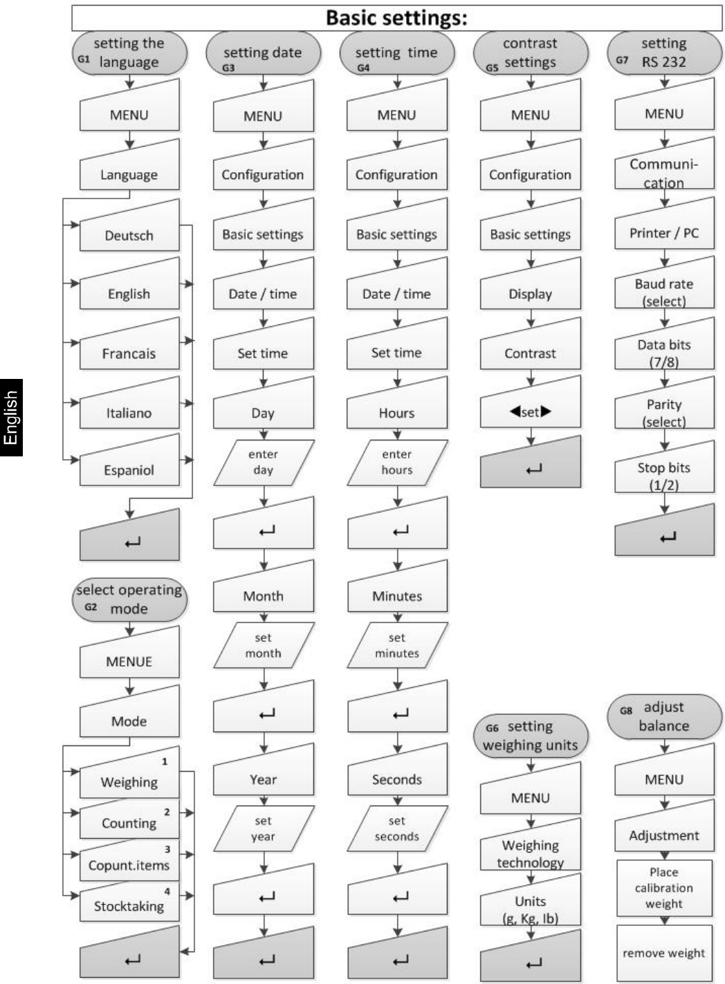 6.2 Menu paths for basic settings / operating modes
