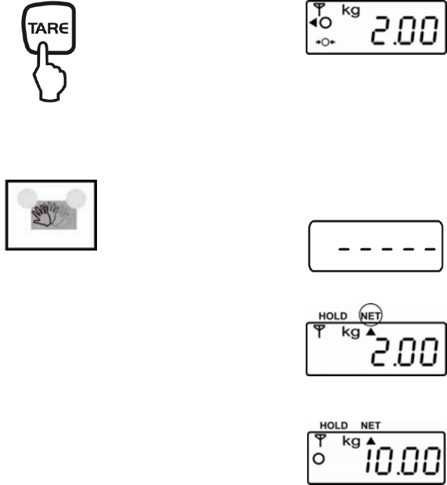 Ö Nacisnąć przycisk TARE lub przesunąć rękę nad