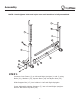 Assembly NOTE: Hand tighten bolts and nylon nuts until machine is fully assembled. A A STEP 3 CARRIAGE ASSEMBLY (A): Slide Adjustable Pin (11) down into Carriage (8) and secure with Washer (37) and Nylon Nut (35). Connect Spring (27) to Adjustable Pin (11) and Carriage (8). Connect Decline Handle (6) to Guide Frame (5) using Bolt (32), Washers (38) and Nylon Nut (36).