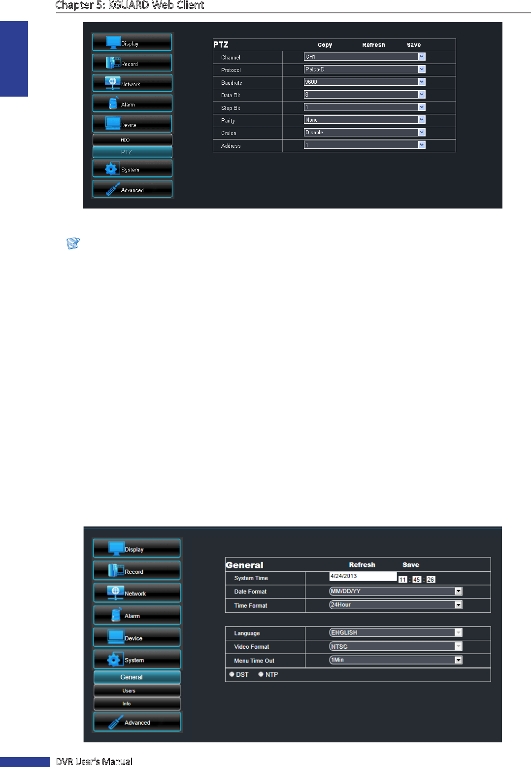 On the System Setup menu, you can modify the me zone and view the language used on the DVR and its signal