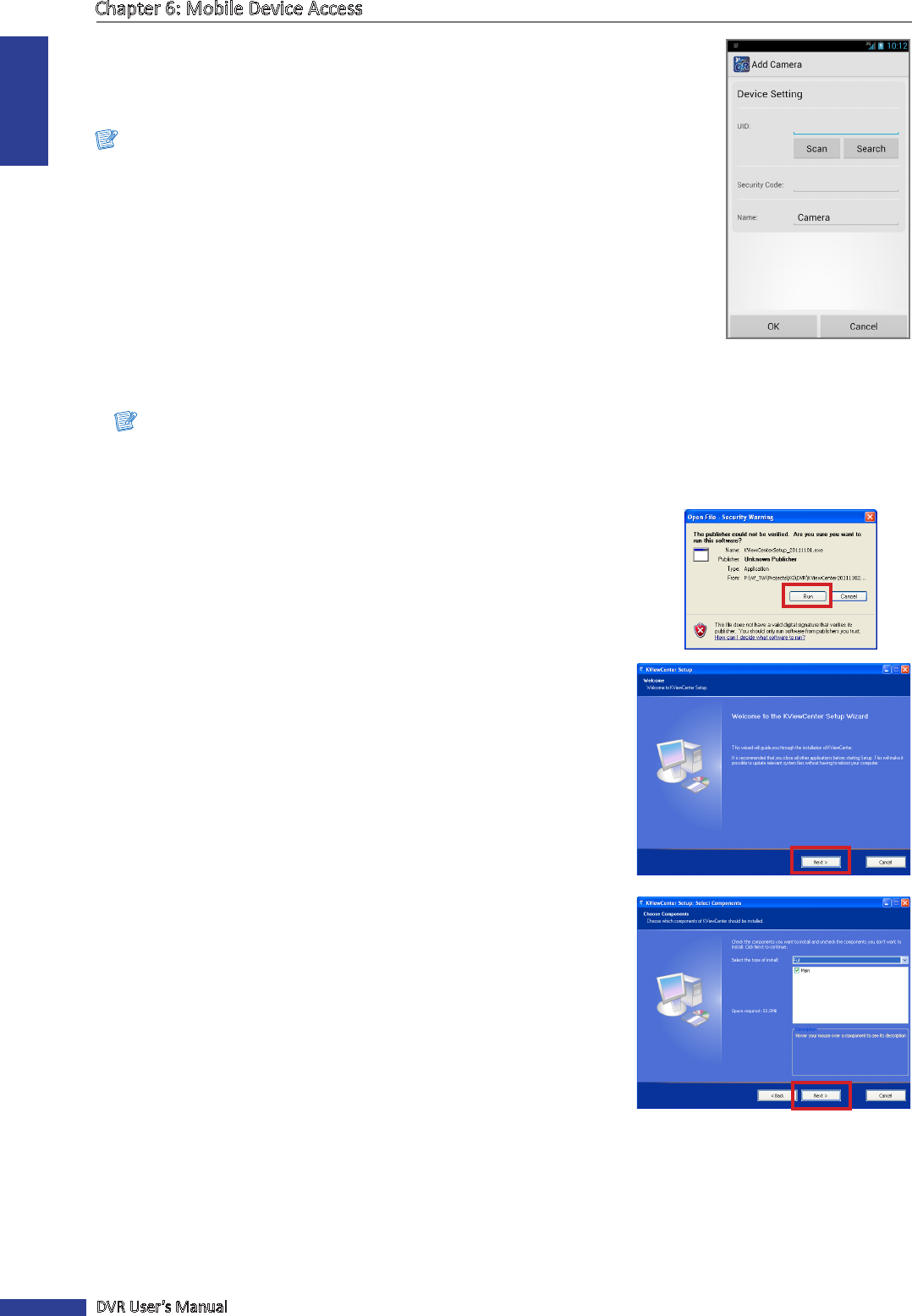 8 Enter the Security Code (password) of connected DVR and change the DVR name
