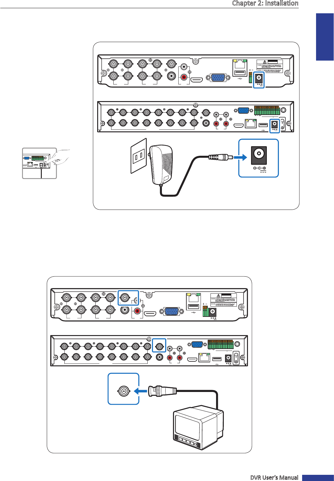 Use only the supplied power adapter that came with the DVR.