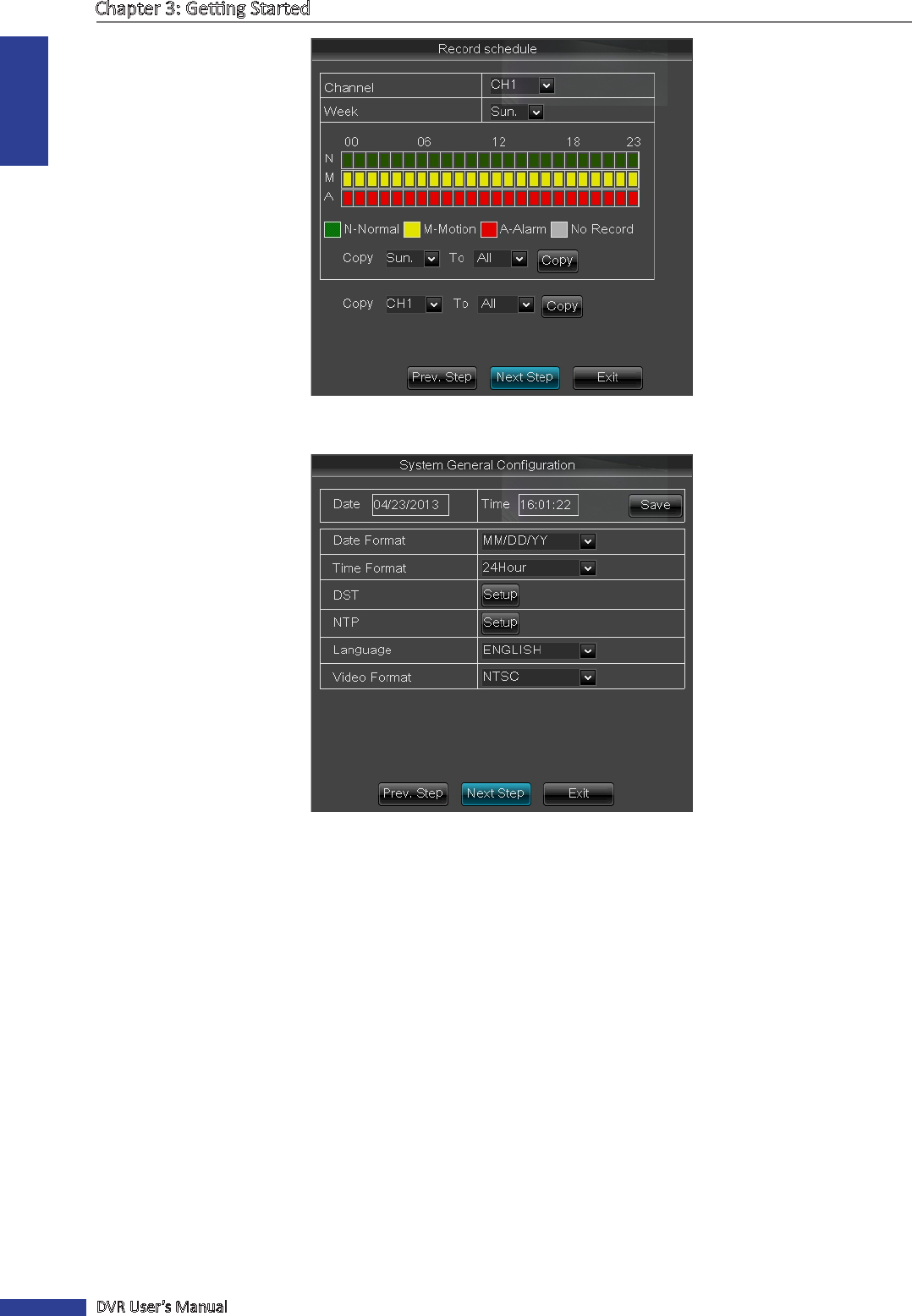 4 Set the date, me, OSD language, and video format sengs. See “4.7.1 General Sengs” on page 65.