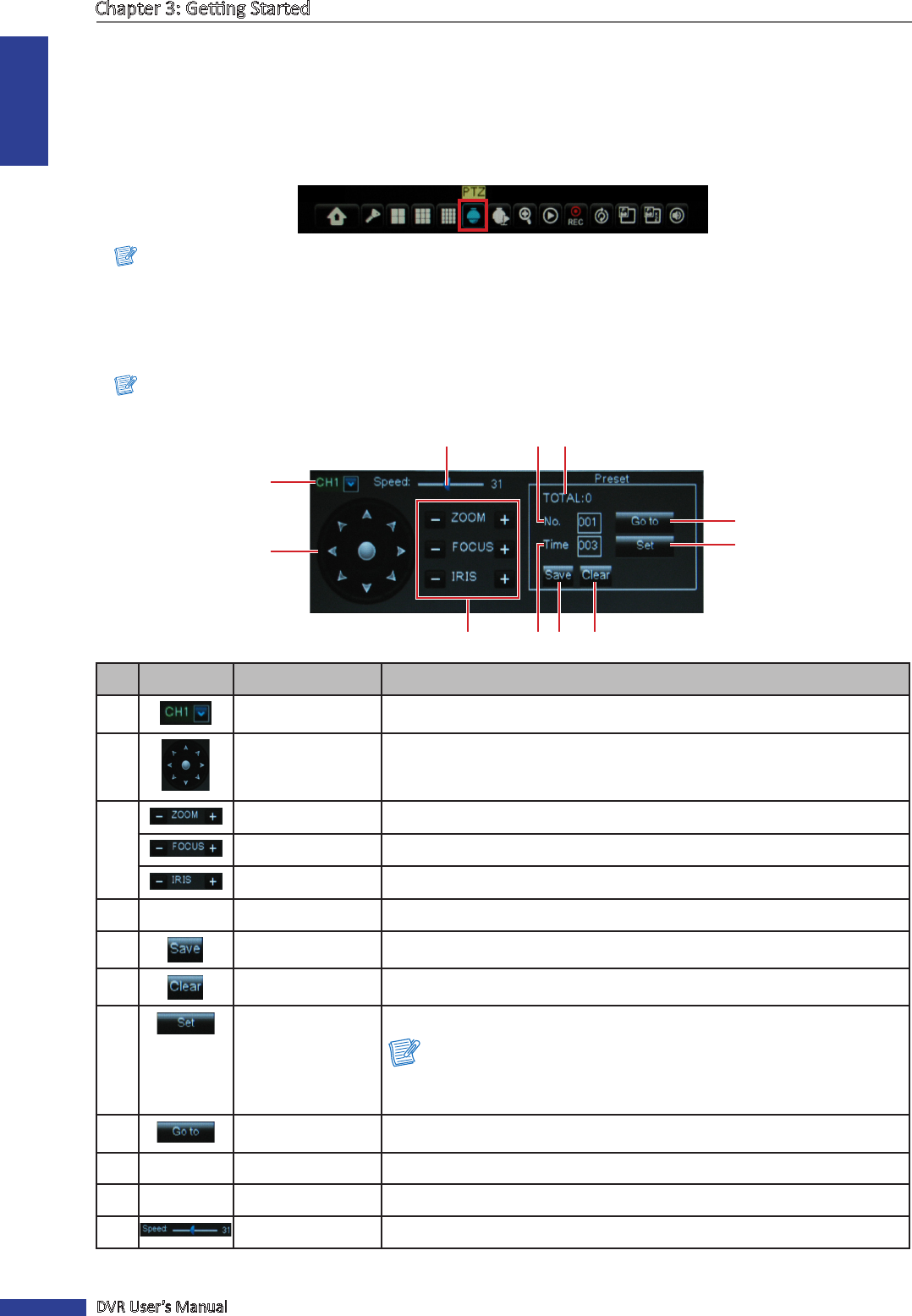 To change the PTZ sengs, see “4.6.2 PTZ Setup” on page 61.