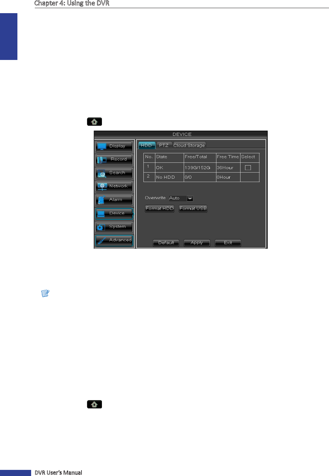 Aer a new hard disk drive is properly installed in the DVR, the system automacally detects the HDD and prompts for