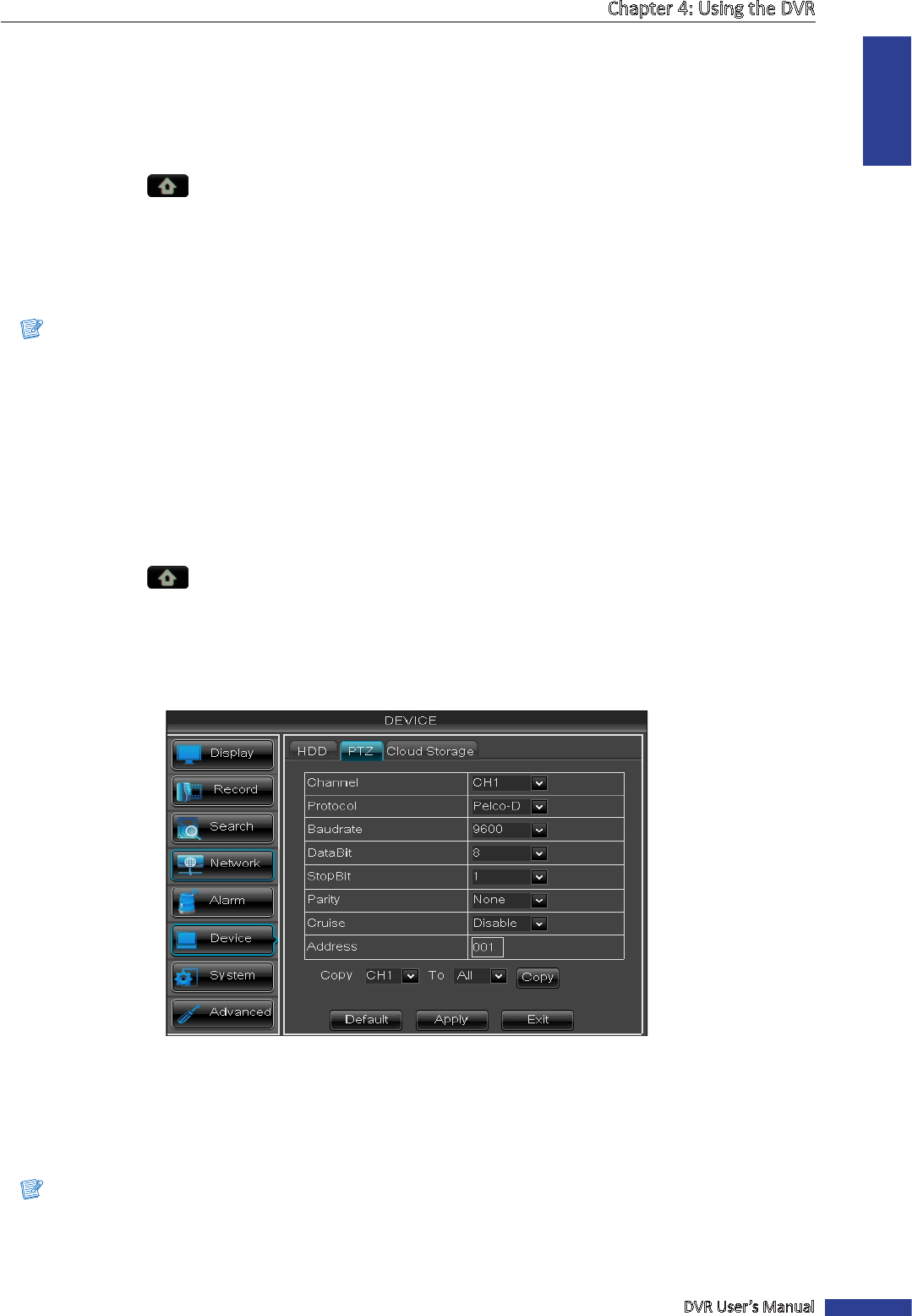 2 Select Main Menu > DEVICE, select the PTZ tab.
