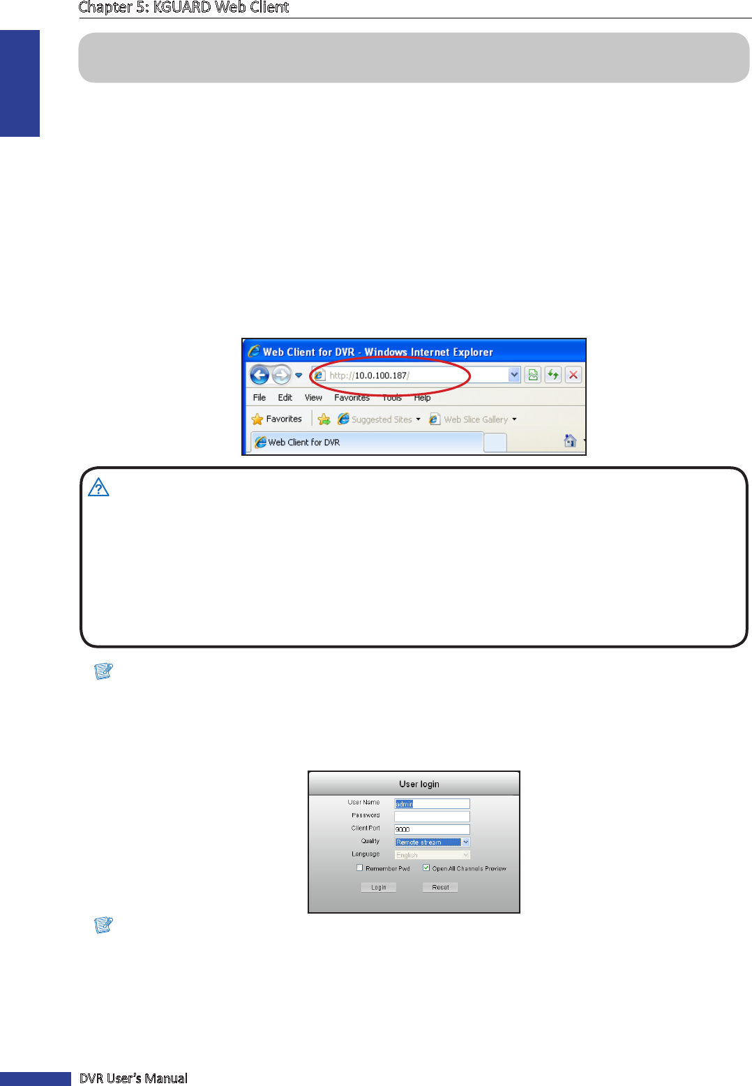 1 Open your computer web browser and enter the DVR IP address or domain name in the URL box.