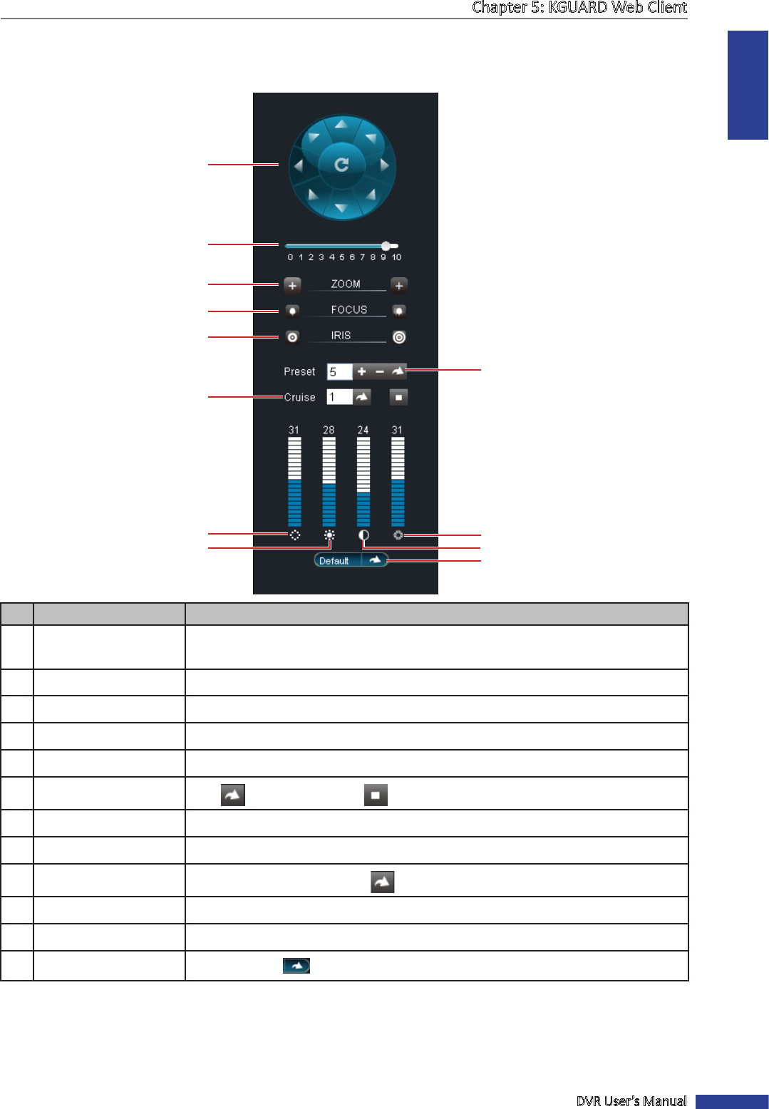 Pointer pan Click the direcon arrows to select the direcon of the PTZ camera.