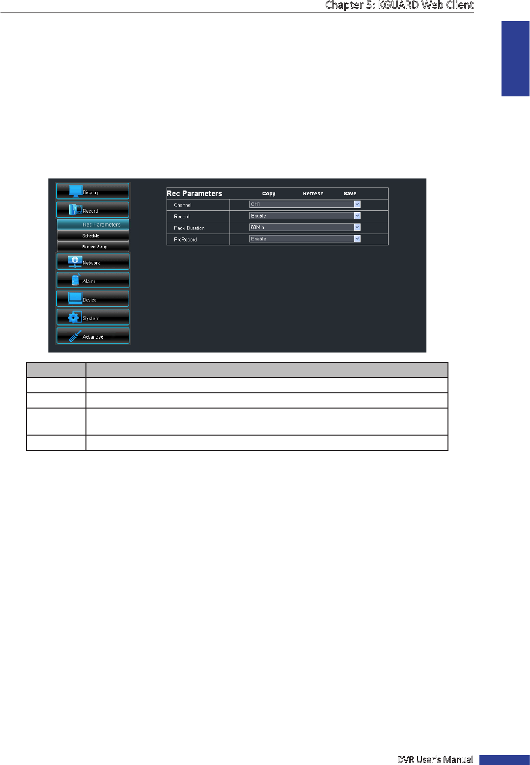 • To apply the same recording sengs to other channels, click Copy. See “Copying Sengs To Other Channels”