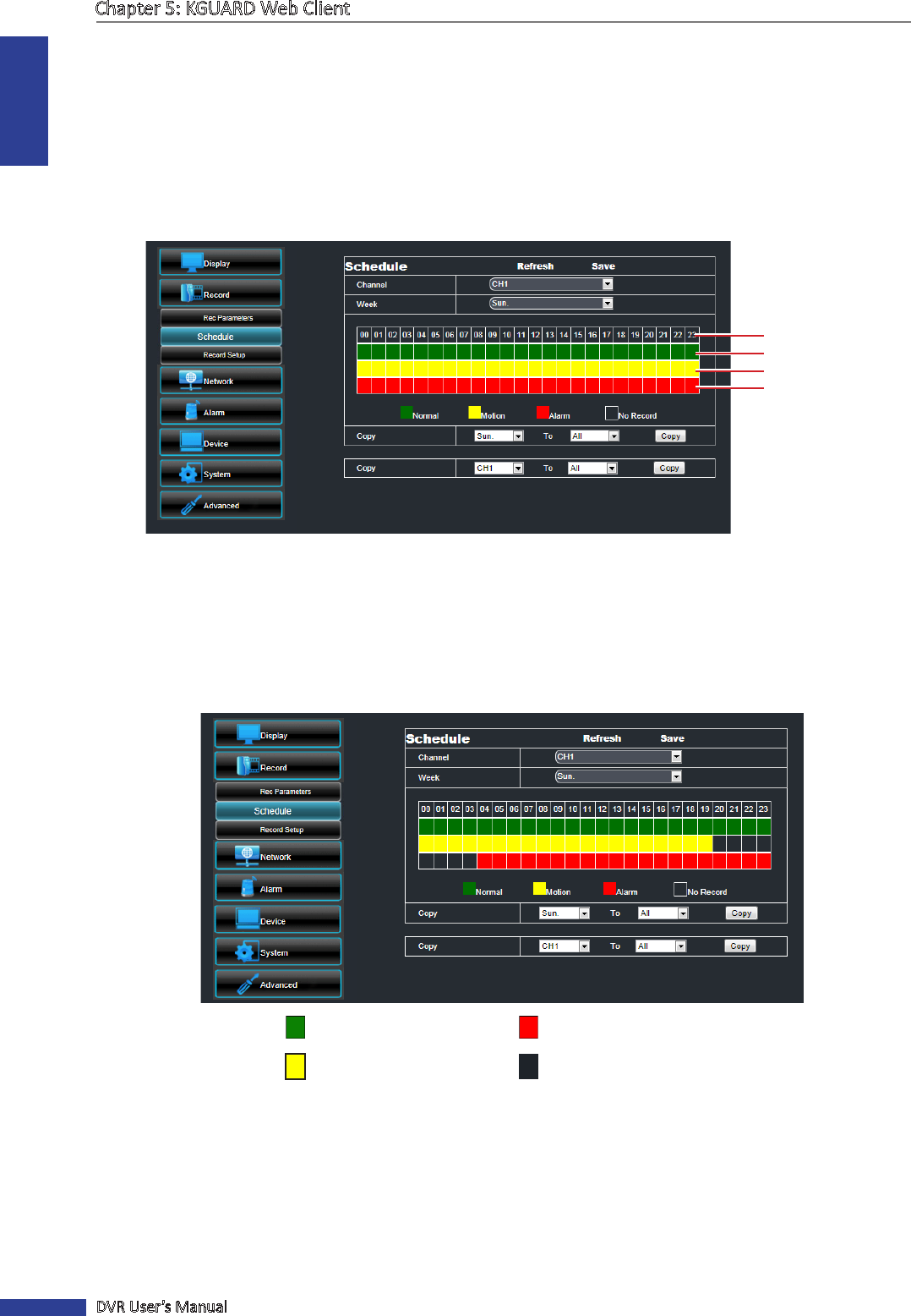 • To apply the same recording sengs to other channels, click Copy. See “Copying Sengs To Other Channels”