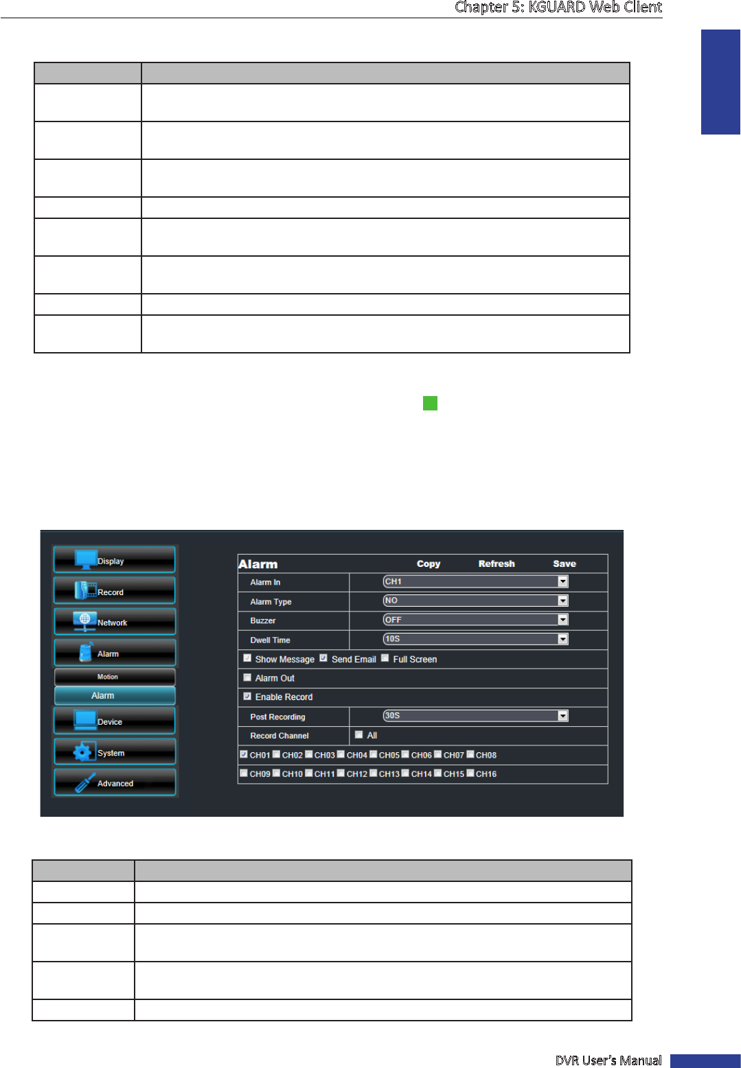 2 On the le panel, click Alarm > Alarm. The Alarm screen appears.