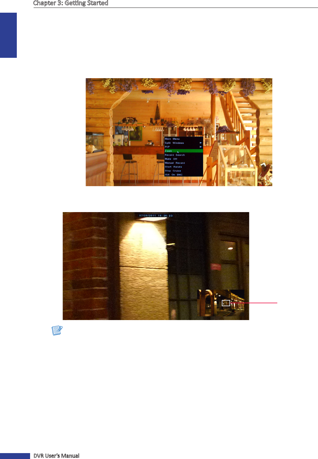 5 To exit the zoom mode, click the right buon twice. It returns to live image display mode.