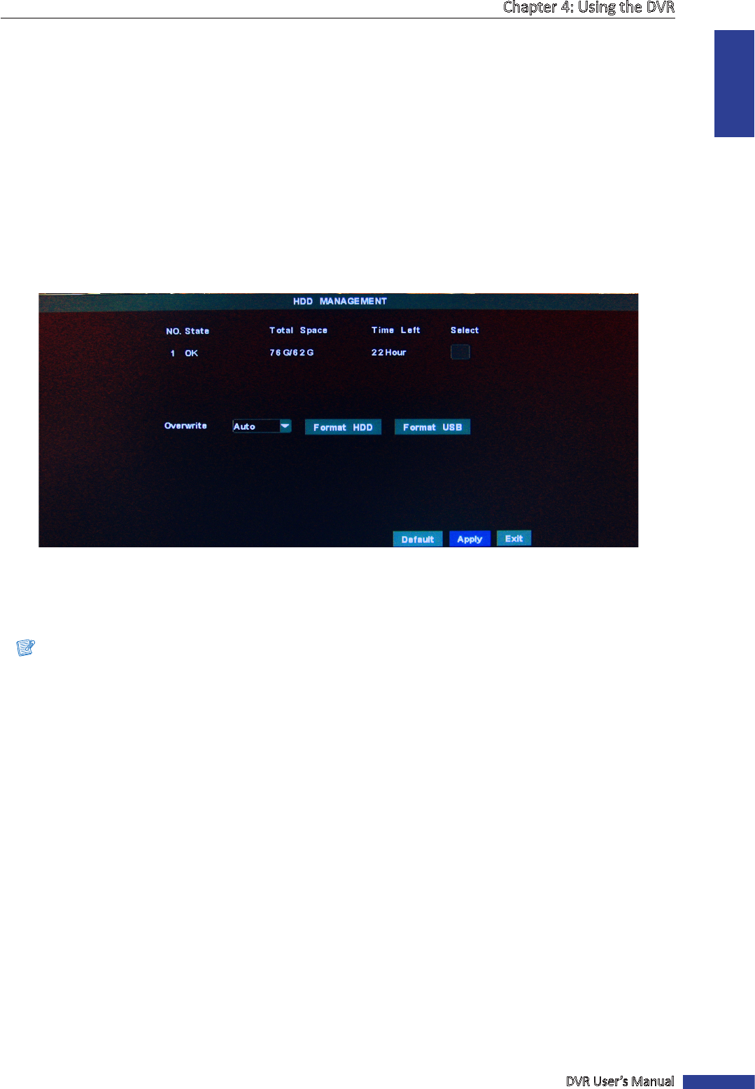 Aer a new hard disk drive is properly installed in the DVR, the system automacally detects the HDD and prompts for