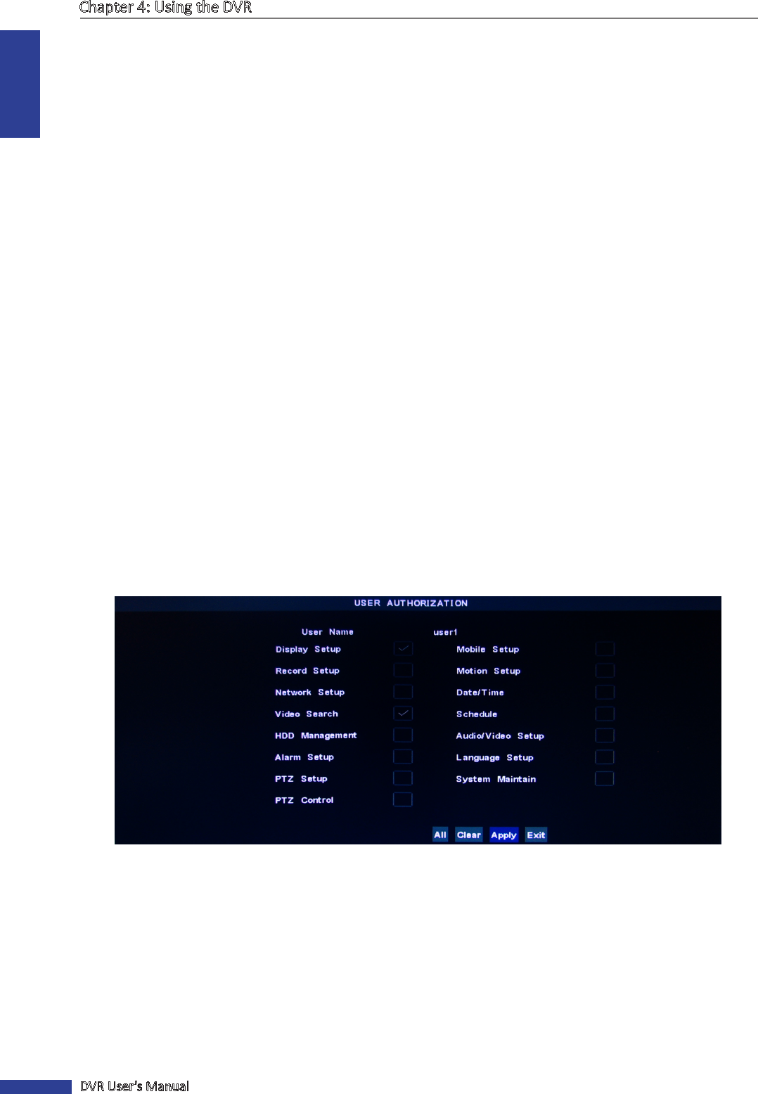 5 Select the check box of the corresponding menu that you want to allow the user to access.